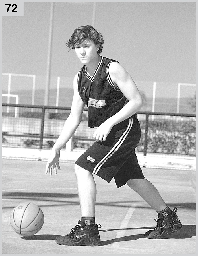 Finta de salida: es un movimiento de pivote con un pie hacia delante e inclinado ligeramente hacia un lado para que el jugador pueda desviarse y realizar una salida por el otro lado con un cambio de ritmo. En los pasos de salida, sólo se mueve el pie con el que se inicia el movimiento (figs. 71 y 72)