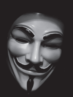 Figura 25. Los miembros del colectivo Anonymous son partidarios de la libre circulación de contenidos en Internet. Toman como símbolo la máscara utilizada por el protagonista de V de Vendetta.