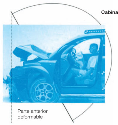 Pero consideremos ahora la envuelta externa del móvil. Para proteger con mayor eficacia a los pasajeros, los constructores de automóviles han definido dos partes muy distintas, la cabina y la parte anterior del vehículo.