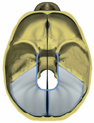 – El contorno del agujero occipital.