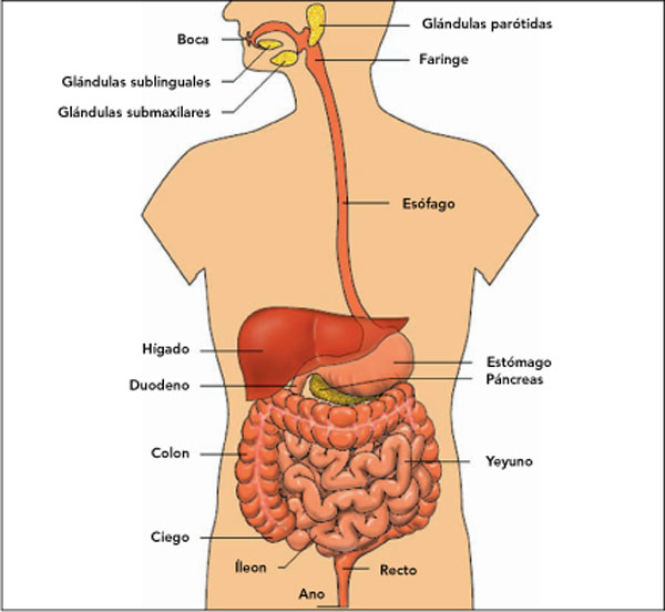 Figura 2.3. Sistema digestivo. Sistema a través del cual se produce la nutrición. (Imagen extraída de la galería de imágenes del proyecto biosfera del Ministerio de Ciencia y Tecnología. Autores: Fernando Bort, Pablo Egea, Carlos Rubio.)