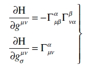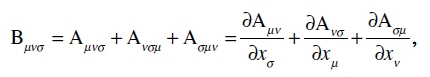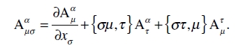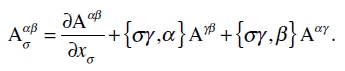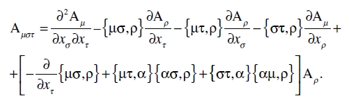 es satisfecho, siendo su miembro izquierdo, por (37), un tensor antisimétrico de tercer rango. El sistema (60) contiene así esencialmente cuatro ecuaciones que se escriben como sigue