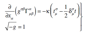 Las ecuaciones (60), (62) y (63) constituyen así la generalización de las ecuaciones de campo de Maxwell para el espacio libre, con el convenio que hemos establecido con respecto a la elección de coordenadas.