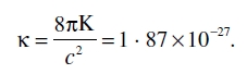 en donde K denota la constante 6,7 X 10–8, normalmente llamada constante de gravitación. Por comparación obtenemos