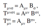 Ejemplos. A partir del tensor covariante de segundo rango Aµν y el tensor contravariante de primer rango Bσ formamos por producto exterior el tensor mixto