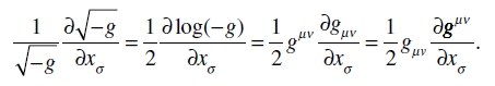 Ahora hemos deducido las leyes generales que son satisfechas por el campo gravitatorio y la materia, utilizando de manera consistente un sistema de coordenadas para el que √–g = 1. Con ello hemos conseguido una considerable simplificación de fórmulas y cálculos, sin dejar de satisfacer el requisito de covariancia general; pues hemos extraído nuestras ecuaciones de ecuaciones generalmente covariantes particularizando el sistema de coordenadas.