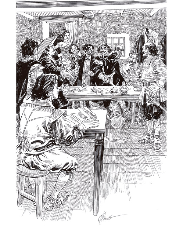 —Poco me parece a mí —sin quitar ojo a los otros, el poeta se enderezaba el mostacho con expresión feroz—. Así que seamos generosos: un palmo para cada uno de estos hijosdalgo, que son hijos de algo, sin duda; pero con dudas, hidalgos.