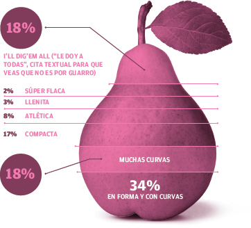 Sobre las tallas del busto, 51% de los hombres prefiere el 34-A, gracias a la madre naturaleza; y sólo 7% 34-C, gracias al cirujano. Lo increíble es que 42% de los hombres prefiere cualquiera de las dos.