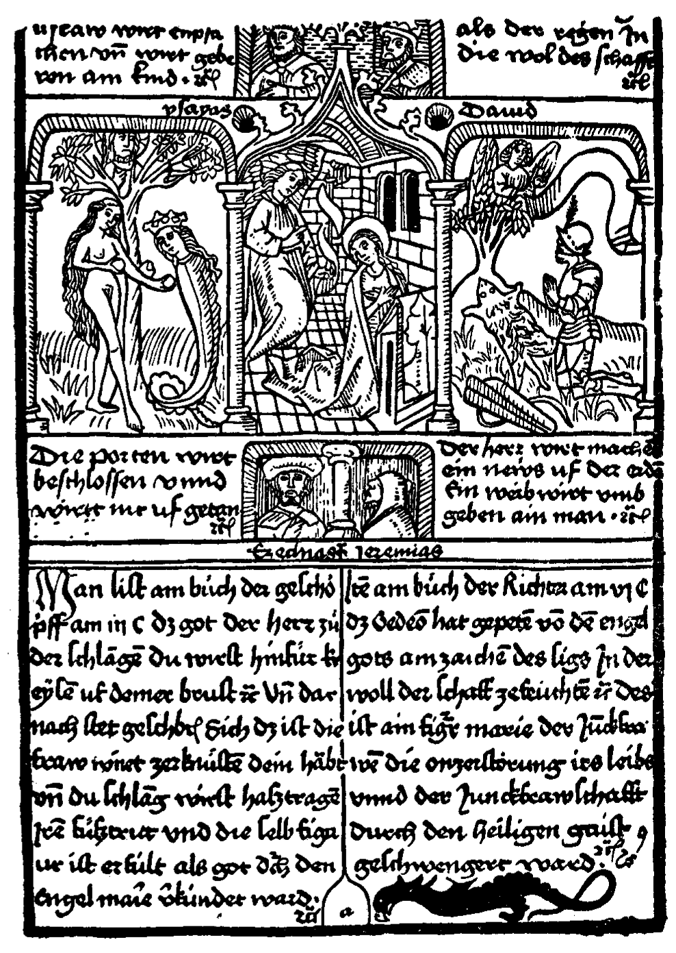 En los talleres de orfebrería reinaba desde mucho tiempo atrás el uso de estampar los ornamentos repetidos constantemente sobre un papel de calca y mediante una pieza de metal ennegrecido. También era conocida la técnica del estampado de telas, importada del Asia oriental, probablemente en el siglo XIII. La idea de recurrir a este procedimiento, que daba buenos resultados y que podía adoptarse sin más ni más, se impuso cuando ya no pudo dar abasto a la demanda el trabajo manual, monótono hasta la fatiga, y casi por completo mecanizado. En el fondo, los mismos impulsos fueron los que condujeron, algunos decenios más tarde, al invento de la impresión con caracteres movibles.