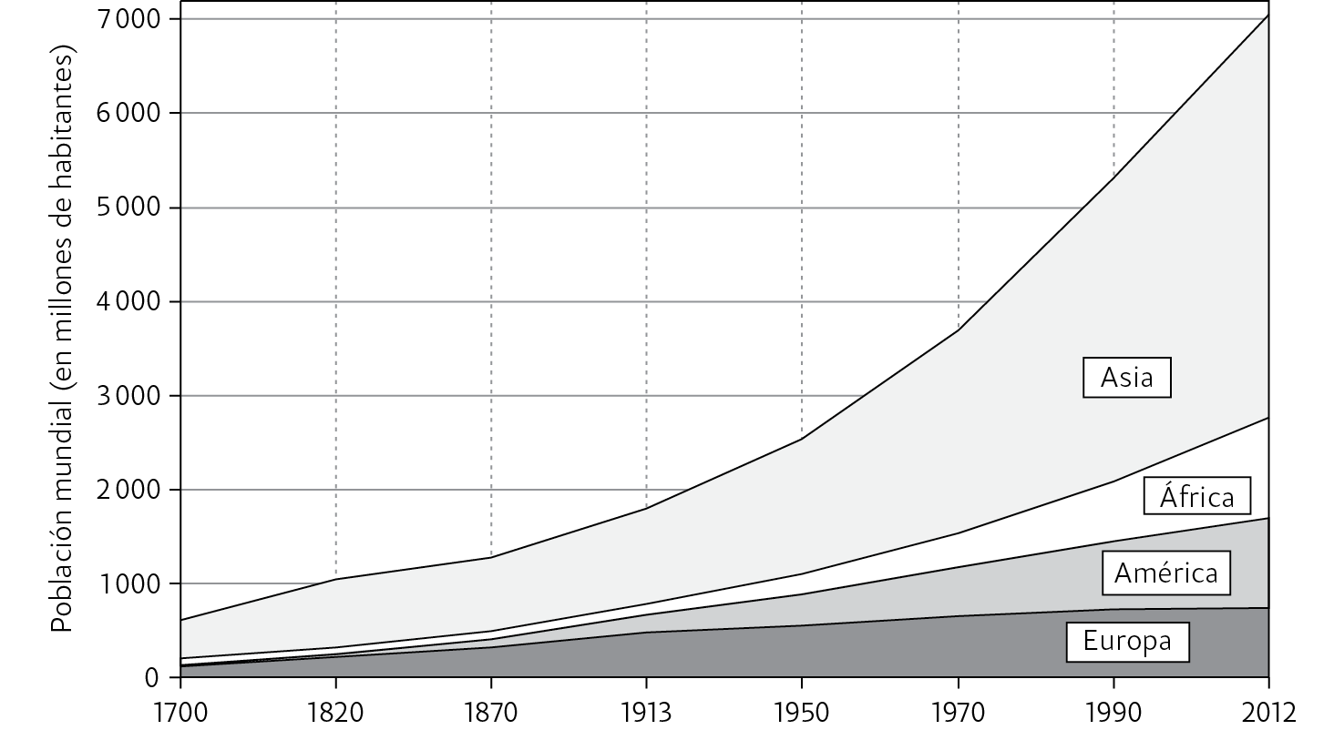 La población mundial pasó de 600 millones de habitantes en 1700 a 7 000 millones en 2012.