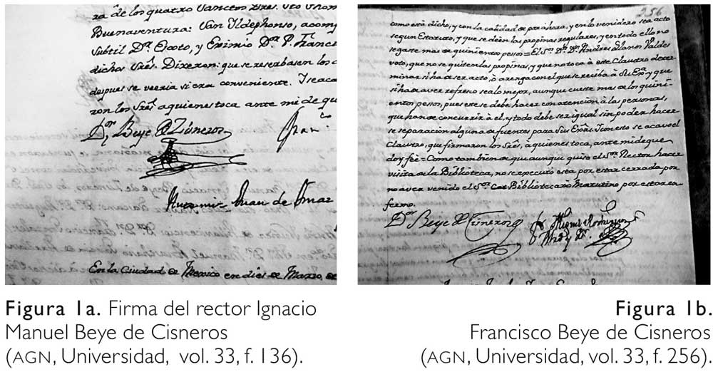 34 Los Beye de Cisneros pertenecían a una familia de criollos ilustrados, asentados en la Ciudad de México desde principios del siglo XVIII. Manuel Ignacio, procurador de la Colegiata, estuvo presente en el IV Concilio Provincial Mexicano, convocado por el arzobispo Lorenzana (Noticia del Cuarto…, 1899: 9). En su calidad de rector, participó en la creación de la biblioteca universitaria. José Ignacio y Francisco, descendientes de Manuel Ignacio, además de rectores fueron abogados de la Real Audiencia y canónigos de la Colegiata de Guadalupe; también tenían negocios con los Fagoaga. Ambos fueron sospechosos de conspirar contra la Corona en 1808. José Ignacio fue diputado en Cádiz por la Ciudad de México. Entre octubre de 1785 y hasta al menos 1788, su hermano, Agustín Beye de Cisneros, desempeñó el cargo de bibliotecario en la Universidad. Véase Mayagoitia (2004: 283-290).