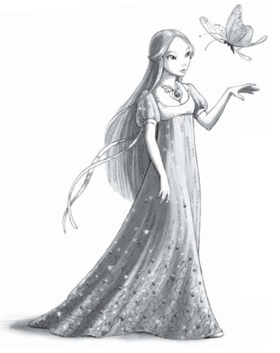 A la princesa li agradava fer una passejada abans de sopar, en companyia de les seves inseparables amigues, les Papallones d’Ales Vellutades, que eren un regal que li va fer el seu pare, el Rei Savi, quan li va confiar el regne.