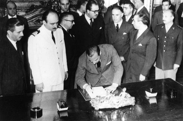 El acta fundacional de la Revolución Argentina, eufemismo con el que los militares bautizaron su dictadura, no dejaba lugar a dudas. De acuerdo con ella, los comandantes en jefe de las tres Fuerzas Armadas destituyeron al presidente, al Parlamento, a la Corte Suprema de Justicia y disolvieron todos los partidos políticos. Al asumir la presidencia, el teniente general (RE) Juan Carlos Onganía juró “observar fielmente los fines revolucionarios, el Estatuto de la Revolución y la Constitución de la Nación Argentina”. La novedosa fórmula de juramento suponía, en los hechos, reemplazar la Constitución por el propio estatuto elaborado por los golpistas, cuyo artículo 1º legitimaba la designación del presidente por los militares. Entre los “fines revolucionarios” a los que aludía Onganía se destacaba en primer lugar la necesidad de “consolidar los valores espirituales y morales” que eran “patrimonio de la civilización occidental y cristiana”. Este objetivo iba acompañado de otro, caro a los deseos de los empresarios que se habían visto afectados por las luchas obreras del período precedente, cual era el de “alcanzar adecuadas relaciones laborales”.