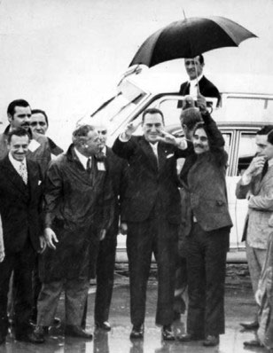 Regreso de Juan D. Perón a la Argentina, a su lado José Ignacio Rucci, 17-11-1972.