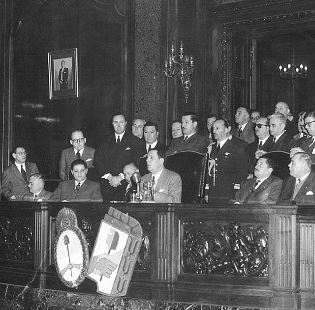 34- AGN, Departamento de Documentos Fotográficos, Caja 3155, Foto 208112. Ese día Perón hizo uso de la palabra.