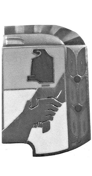 Durante las primeras dos presidencias de Perón el Escudo tuvo una profusa circulación en toda clase de contextos. No sería exagerado decir que su imagen saturó el campo visual, alcanzando una presencia en todo el país que rivalizaba con la de los propios símbolos patrios. Y lo hizo a través de diversos canales y en diferentes formatos. El taller de Guzmán llegó a producir 16.000 distintivos metálicos por día. La gran mayoría se utilizaron como prendedores, que los peronistas lucieron en sacos y vestidos. Como recordó un trabajador porteño que militaba en esa época, entrevistado para este libro, él y sus amigos lo llevaron en toda ocasión; para ellos «era sagrado». (6) Pero también se los adhería a las tapas de algunos de los libros de propaganda que, por miles, editó la Subsecretaría de Informaciones del Estado por esos años. Además, las Medallas Peronistas (también llamadas «de la Lealtad») y otras distinciones que entregaba el gobierno también incluían los Escudos del taller de Guzmán (quien fabricó incluso uno de gran tamaño que cubrió el féretro de Evita y otros cruzados por una banda negra en señal de luto). (7)