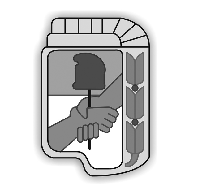 Pero había más significados que los que pudieran discernirse de la mera observación de los blasones del Escudo. Los estudiosos del lenguaje visual han llamado la atención sobre la necesidad de analizar una imagen singular teniendo siempre en cuenta la relación que mantiene con otras que, como ella, habitan el campo de lo que una sociedad puede ver en un momento determinado. (19) En verdad, la orientación diagonal de las manos debe interpretarse en la relación visual que establece con la posición horizontal del escudo nacional, con el que dialoga no solo por la alusión implícita de la imagen, sino también por el hecho de que, como vimos, uno y otro solían mostrarse juntos en los actos oficiales, con el peronista ubicado a la derecha desde el punto de vista del observador. Debe tenerse en cuenta que las manos entrelazadas llegaron al emblema patrio casi con seguridad retomadas de la simbología de los grupos jacobinos que protagonizaron la Revolución Francesa de 1789 (fig.). (20) Además, en la Argentina también se utilizaba en el logo de la Federación Obrera Regional Argentina —la primera central obrera— y en otras entidades sindicales de signo anarquista (fig.). En ambos casos, simbolizaba fraternidad.