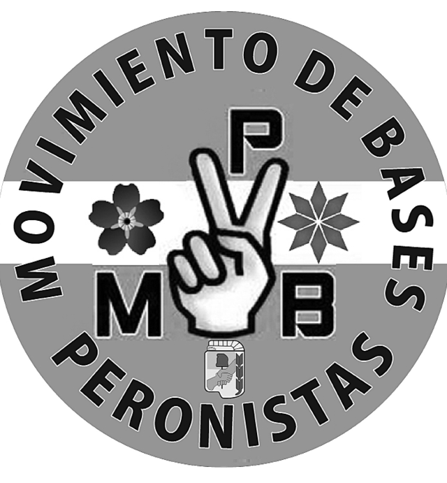 Fig: Una flor de nomeolvides, el Escudo, la estrella federal y los dedos en V: todos los emblemas conviviendo en el logo del Movimiento de Bases Peronistas fundado en Mar del Plata en 2012.