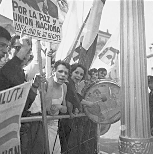 Pero también es cierto que la misma polisemia de las imágenes vuelve riesgosos los intentos de «leer» en ellas significados unívocos: contrariamente al dicho popular, la precisión que brinda la palabra a veces vale por mil imágenes. (61) Un análisis más detallado del contexto en el que se utilizaban los Escudos bicolor puede arrojar más luz sobre la cuestión que nos ocupa, toda vez que su uso aparecía asociado a la reivindicación del criollo que se venía proponiendo desde el discurso oficial. Tomemos, por ejemplo, el Cabildo Abierto de 1951. Bajo el Escudo bicolor gigante, ese día precedió la ansiada aparición de Evita un discurso del secretario general de la CGT, José Espejo. Antes de ocupar ese cargo, Espejo había sido trabajador en el gremio de la alimentación en Buenos Aires, donde había llegado buscando mejor suerte desde su San Juan natal. Además, era morocho y de tez amarronada. En fin, un prototipo de lo que los antiperonistas llamaban un «cabecita negra». En su discurso Espejo destacó que la inmensa multitud reunida allí llegaba «desde los cuatro puntos cardinales» del país y traía «la voz de la historia», ya que ese pueblo «descamisado y sencillo» estaba relacionado directamente con el pueblo que había ofrendado «su sangre generosa» en las luchas por la Independencia. Para Espejo, el peronismo era precisamente una vindicación de «la patria vieja, vencida, humillada» durante «casi un siglo», antes de la llegada de Perón (nótese que ese pasado de ignominia arrancaba, entonces, con la organización nacional en 1853 e incluía, por ello, la etapa de la gran inmigración). (62) Las alusiones al mundo criollo no eran solo de Espejo. Como solía ser el caso en todas las grandes manifestaciones peronistas de esos años, entre la multitud reunida había gente ataviada como gauchos, algunos incluso a caballo. Los obreros de un frigorífico del Gran Buenos Aires habían llegado «vestidos a la usanza gaucha mientras en una carreta tirada por cuatro bueyes un grupo de paisanos y paisanas hacían oír canciones criollas». Los diarios oficialistas se ocuparon de incluir fotografías de estas performances, y destacaban también la presencia del «paisanaje de tierra adentro», llegados «desde el pueblito más distante de Misiones, Chaco, Jujuy o San Juan», los «verdaderos criollos, representantes genuinos del espíritu que encarna la Nueva Argentina». (63) El film propagandístico que la Subsecretaría de Informaciones difundió inmediatamente después del evento también insistía en filiar la multitud allí reunida con la que había protagonizado la Revolución de Mayo: llegaban «desde el fondo de la historia», después de haber esperado más de un siglo para ver cumplidos sus anhelos. (64)