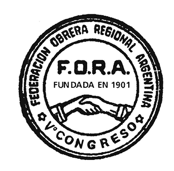 Figs.: Laissez passer utilizado en la Asamblea Nacional de París (c. 1793) y emblema de la FORA