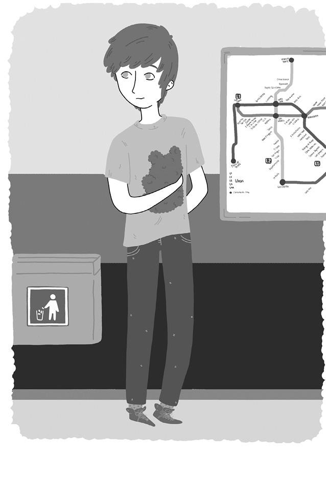 «No puedo dejarlo plantado otra vez, me esperó como ochenta horas el otro día», pensé. Caminé las últimas cuadras para llegar y ahí estaba. Era exactamente el mino de las fotos: alto, 1,80 más o menos, peinado emo (un poco más corto, tal vez), pelo claro y ojos casi azules. Me llamó la atención su rostro. Igual aparentaba más de los dieciséis años que me había dicho que tenía (más encima me gustaban viejos, yo tenía trece), pero no puedo decir que era feo. Estaba vestido con una polera verde y unos jeans apretados azules, zapatillas anchas DC de las que se usaban en esos tiempos, apoyado en la pared con un peluche en las manos.