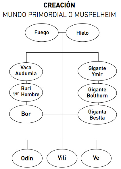 Al principio era el vacío y el abismo. Tan grande que parecía no tener fin. Su nombre: Ginnungagap. Ni luz, ni agua, ni hojas; tampoco silencio, ni siquiera un grano de arena. Nada. Y de pronto esa nada pasó a ser algo y comenzó así la transformación del mundo. Fuego y hielo —Muspelheim— que, combinados, crearon las aguas de los ríos, manantiales y mares.