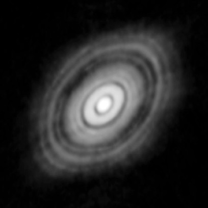 Imagen del HL Tauri tomada por el Atacama Large Millimeter Array, en la que se muestran los anillos concéntricos de polvo y los huecos entre ellos.