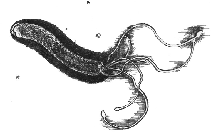 Durante mucho tiempo, la presencia de lesiones en la mucosa del estómago se vinculaba directamente a un exceso de secreción de ácido gástrico, y se asociaba con el estrés y el consumo de sustancias como el café, el tabaco o el alcohol. Pero a principios de los años ochenta, la misma década que vio nacer al dúo Milli Vanilli que con su música llenaba las pistas de baile de medio mundo, los doctores australianos Robin Warren y Barry J. Marshall, del Royal Perth Hospital, descubrieron que responsabilizar al estrés de los destrozos que en ocasiones sufre el revestimiento del estómago humano era una acción tan injusta como otorgar el mérito del éxito que, por entonces, alcanzaron las canciones de aquel famoso grupo de pop a los dos andróginos impostores. Warren y Marshall localizaron unas extrañas bacterias habitando alegremente en la mucosa del estómago humano, algo realmente sorprendente habida cuenta de la acidez que reina por aquellos lares. Pero el microorganismo, que llegaría a alcanzar la fama con el nombre artístico de Helicobacter pylori,3 posee la habilidad para sintetizar un compuesto de característico y desagradable olor, el amoníaco, que neutraliza la acidez a su alrededor y le permite desarrollarse en tan limitante hábitat. El problema es que la bacteria rara vez se ciñe a vivir pacíficamente en nuestras entrañas, pues debe interactuar con sus vecinas las células del estómago si quiere mantener con ellas una pacífica coexistencia. Los doctores australianos descubrieron que la interacción de las bacterias con el tejido que recubre el estómago desencadena la inflamación de la mucosa gástrica, que de forma sostenida conduce a una ulceración e, incluso, con el tiempo al desarrollo de cáncer de estómago. Esta observación llevó directamente a los investigadores a conseguir en el año 2005 el Premio Nobel de Medicina, y a la bacteria que descubrieron en nuestras tripas a formar parte del amplio catálogo de sustancias carcinógenas.