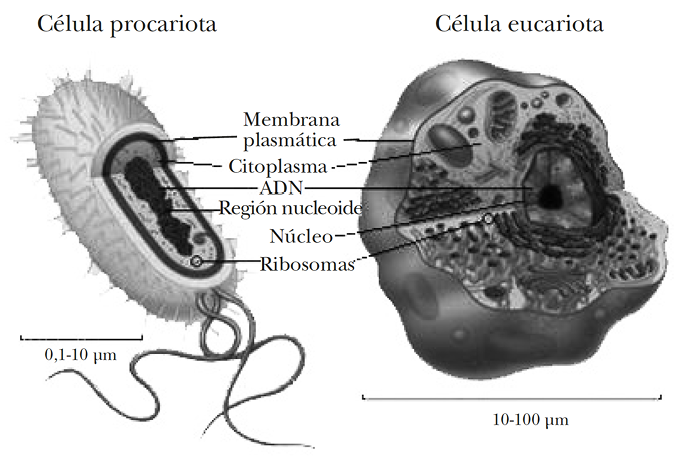 Estructura de la célula procariota y eucariota.