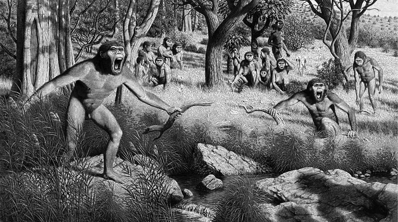 Imaginemos la escena. Hace cinco millones de años. En el borde del bosque tupido, una manada de homininos se sostiene sobre las patas traseras mientras otea la herbosa sabana espiando cualquier movimiento: su aguzado instinto le dice: «Ahí están los mamíferos que puedes comer, los antílopes, los ciervos, las jirafas (sus antepasados, quiero decir), pero también están los leones que pueden devorarte.»