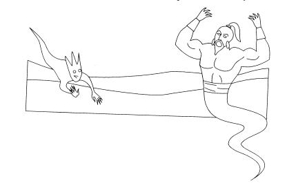 Inmediatamente, agarré fuertemente mi espada y la levanté con la intención de matarla. Pero ella, aun viéndome decidido a darle muerte, soltó una gran carcajada y me increpó: