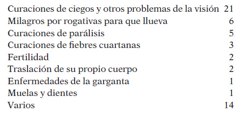 Según la Congregación de San Isidro, se le han contabilizado un total de más de cuatrocientos milagros; de ellos, cincuenta y cinco fueron post mórtem, con la distribución siguiente: