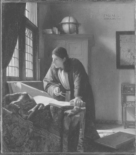 Figura 1.1. El geógrafo, cuadro de Vermeer pintado hacia 1668 y que tuvo como modelo, muy posiblemente, al científico Anton Van Leeuwenhoek. Städel Museum. Frankfurt del Meno. Fotografía: Städel Museum - Artothek.