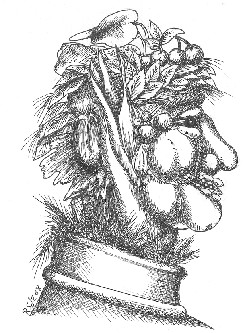 Figura 1.4. Inspirada en el cuadro de Archimboldo El verano (pintado hacia 1573), la imagen nos muestra una cabeza humana obtenida por combinación del conjunto de elementos de la figura anterior. (Dibujo de Ricard Solé.)