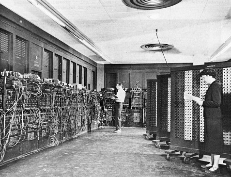 Figura 1.2. Los primeros ordenadores capaces de llevar a cabo cálculos complejos, como el ENIAC (una parte del cual vemos en la imagen), ocupaban cientos de metros cuadrados, pesaban varias toneladas y aun así no podrían competir con una calculadora de bolsillo moderna. (Imagen cortesía de la Universidad de Pensilvania.)