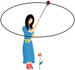 Hasta aquí, todo es perfectamente razonable, pero cualquiera puede alegar que no todas las cosas que giran salen disparadas. Si, por ejemplo, atamos una cuerda a una piedra y la hacemos girar, ésta permanecerá orbitando nuestra mano hasta que nos cansemos.