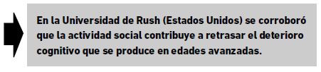 5. Una investigación realizada por especialistas de la Universidad de Rush (Estados Unidos) corroboró que la actividad social contribuye a retrasar el deterioro cognitivo que se produce en edades avanzadas.