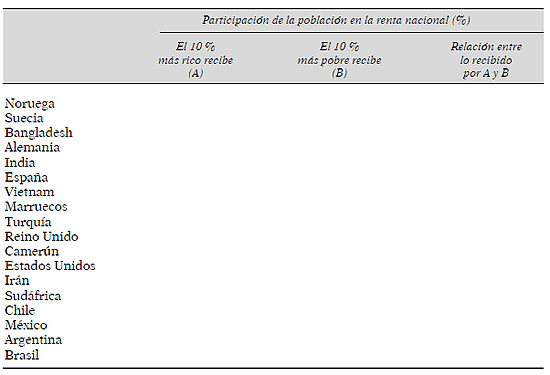 TABLA I.1.2. Desigualdades sociales en el interior de un país