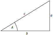 El triángulo rectángulo es fundamental en trigonometría, en particular determina las funciones básicas de la trigonometría: seno, coseno y tangente. Los nombres son de origen árabe y la historia de estas funciones y sus muchas predecesoras muestra el complicado camino por el cual surgió la versión actual del tema. No daré muchas vueltas y explicaré el resultado final. Un triángulo rectángulo tiene, obviamente, un ángulo recto, pero sus otros dos ángulos son arbitrarios, exceptuando el hecho de que suman 90º. Asociadas con cualquier ángulo hay tres funciones, esto es, reglas para calcular un número asociado a él. Para el ángulo marcado como A en la figura 5, usando la notación tradicional a, b, c para los tres lados, definimos el seno (sen), coseno (cos) y tangente (tg) como: