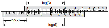 FIGURA 11. Multiplicación de 2 por 3 en una regla de cálculo.