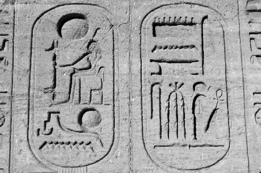 Figura 2.4: Estos cartuchos rodean nombres de faraón, palabra que, a través del hebreo, nos viene del egipcio per-aa, la ‘casa grande’, el ‘palacio’. Y el penúltimo jeroglífico (que se lee ms) lo encontraremos helenizado/castellanizado en Tutmosis, Ahmosis, Ramsés... y Moisés.