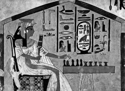Figura 2.5. La reina Nefertari jugando al senet. En egipcio, nefer significaba ‘bella’, por lo que originó muchos nombres propios egipcios (Nefertari, Nefertiti...) y quizá un nombre común nuestro: nenúfar. Y de su nombre egipcio šn algunos hacen derivar nuestros nombres propios Susana y Azucena.
