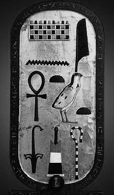 Figura 2.7. Los tres primeros signos son el nombre de Amón, el cuarto es el ankh y luego t + u + t (= tut). ¡Facilísimo: Tutankhamón!