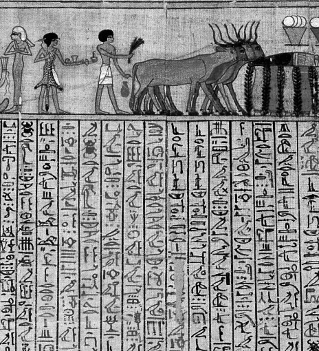 Figura 2.11. La escritura hierática no es sino una cursiva de la jeroglífica. La primera palabra y la primera mitad de la segunda proceden del griego hierós, ‘sagrado’. Y del griego vendrán el nombre del papiro egipcio y el de nuestro papel.