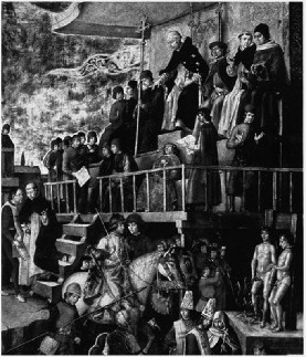 Auto de fe presidido por santo Domingo de Guzmán (detalle). Berruguete.