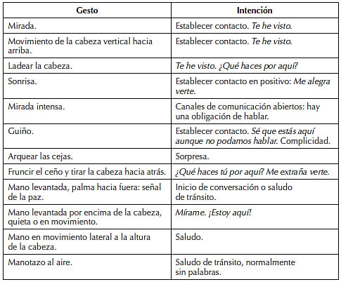 2. Saludos de inicio de la conversación: son los que hacemos con voluntad de entablar una conversación. Los gestos muestran que nos estamos preparando para este intercambio.