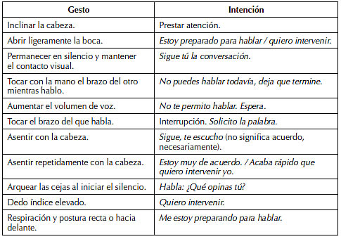 2. Durante la conversación: para indicar que nos está escuchando, nos quiere interrumpir, no nos permite hablar, se quiere marchar, no quiere intervenir.