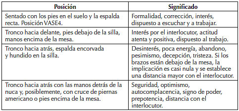 • Brazos cruzados apoyados en la mesa. Expresan una actitud similar al cruce de brazos cuando estamos de pie. Pueden estar puestos en paralelo pero igualmente describen el espacio que nos protege.
