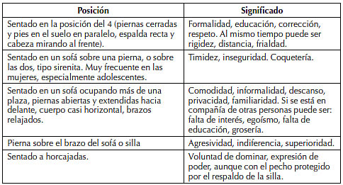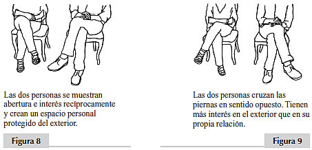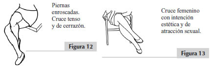 1. Piernas enroscadas. Se trata de un doble cruzamiento realizado casi exclusivamente por mujeres, indica fuerte tensión.