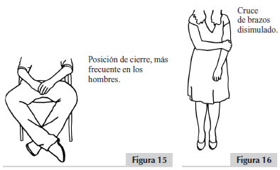 En contraposición con la actitud corporal abierta, puede expresar sumisión, pues es el gesto que adoptamos ante una amenaza y también porque estamos diciendo que no plantearemos ningún conflicto, sino todo lo contrario, pues nuestra actitud es de protección y no de agresividad.